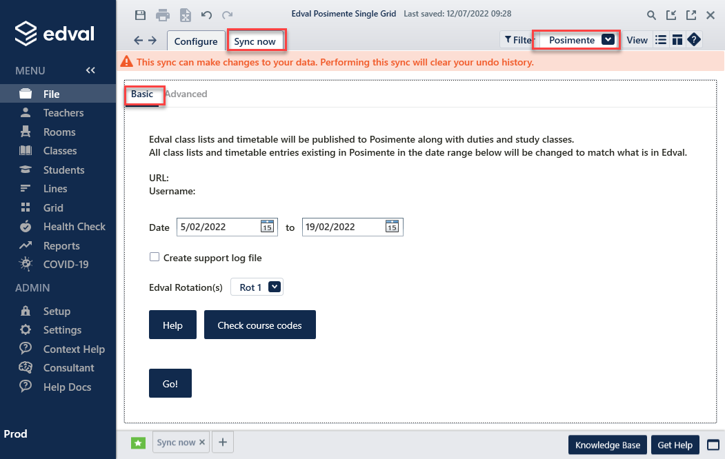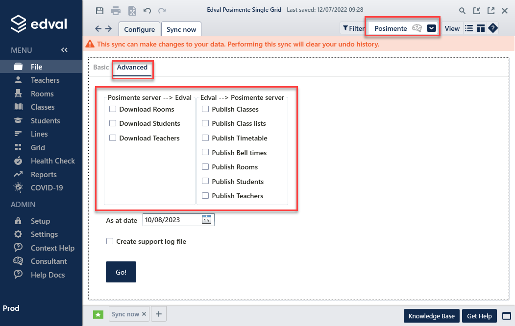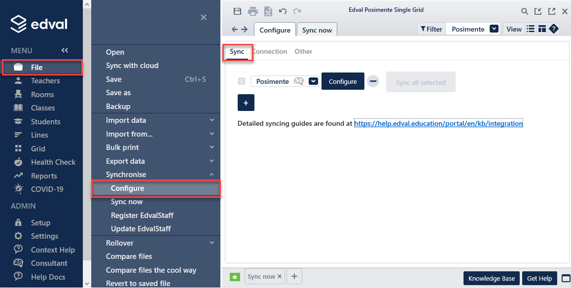 Sync timetable & class lists every time you save | This will send only the timetable and class membership data to Posimente each time you save the file |