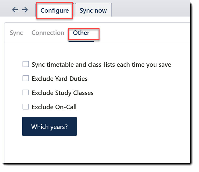Which years?- Sync all year levels: By default, all year levels are ticked, in which case all year levels will be synced.