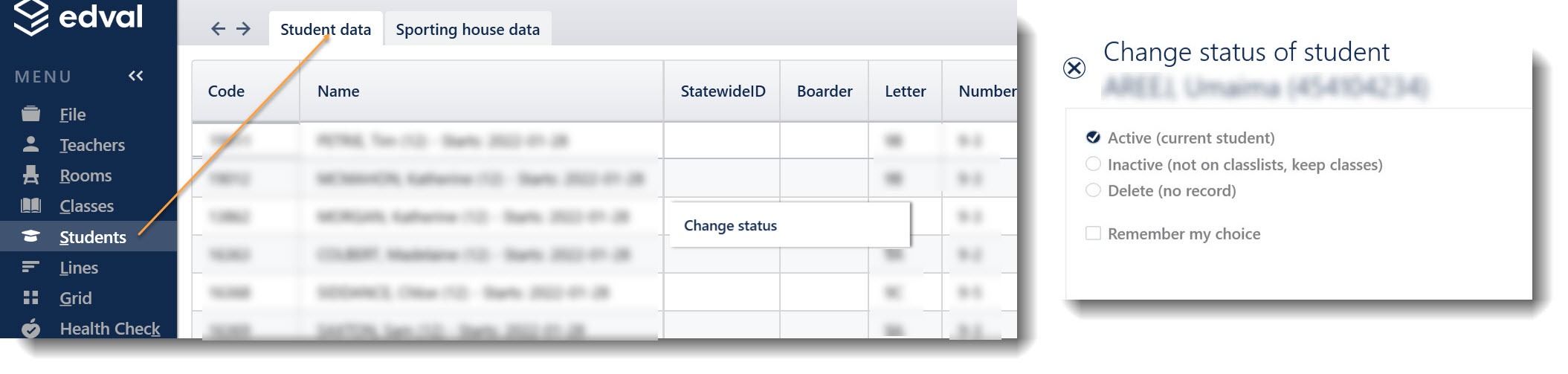 Changing the status of a student