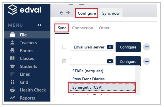 - From the Sync tab, select Synergetic (CSV) from the dropdown options.