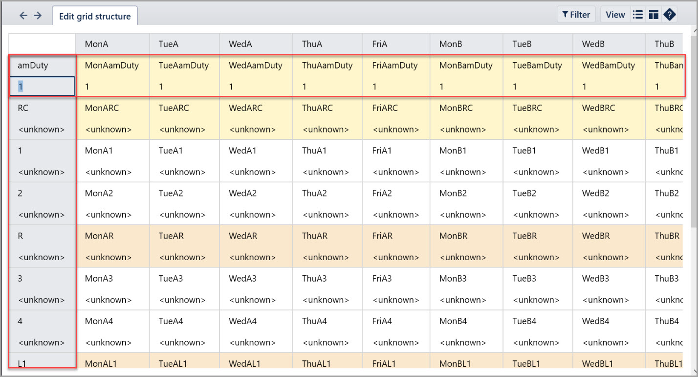 Put the Synergetic period number into the bottom half of each cell. Do this in the left axis to auto populate them across the row for each day of the cycle.