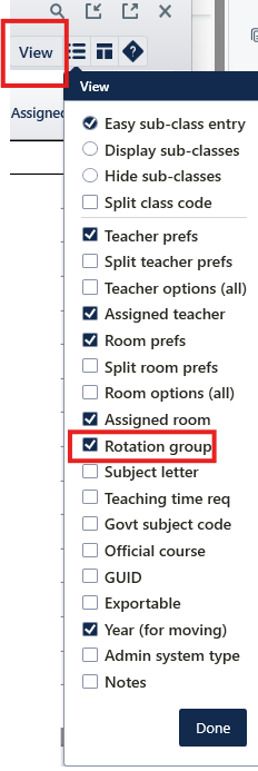 Specify rotations for classes that do not run for the whole year by entering one or more 'rotations' in this column.