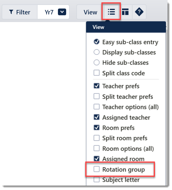 If this column is not displaying, navigate to the View options and select 'Rotation group' to display the field.