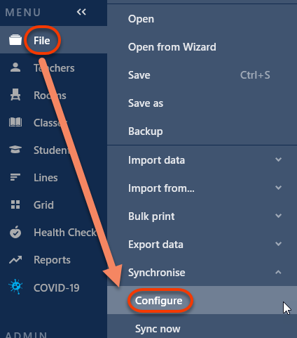 - Go to File > Synchronise > Configure