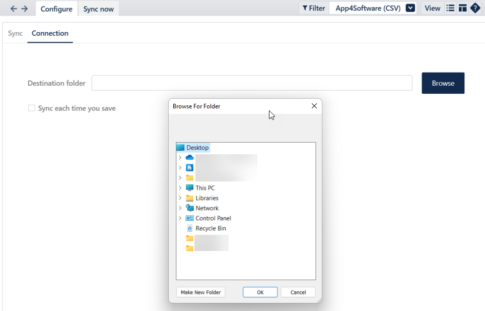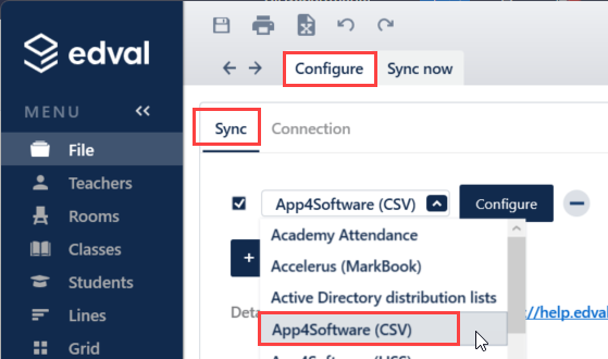 - From the Sync tab, select App4software (CSV) from the dropdown options.