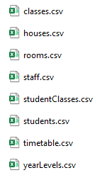 The below table explains what type of data each csv file contains when exported: