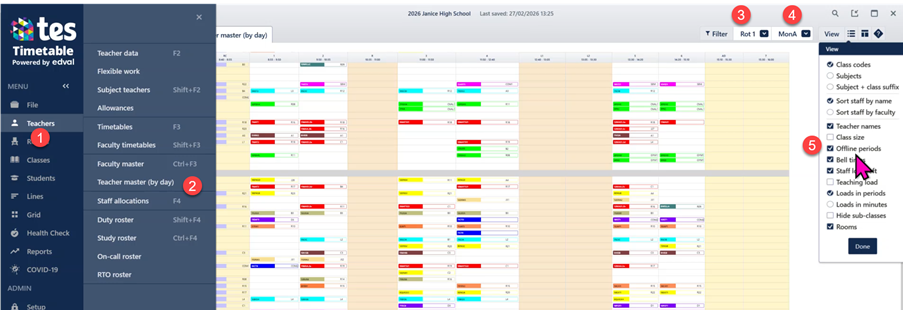 - Go to Teachers>Teacher Master by Day